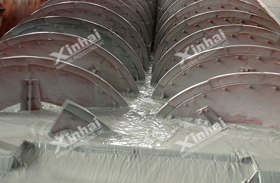 In addition, the rotating speed of the spiral will directly affect the agitation degree of the liquid surface and the capacity of conveying sand return. In the production, the overflow fineness and the productivity of sand return must meet the requirements. The faster the rotating speed is, the higher the capacity of returning sand is, but the increasing agitation effect will make the coarse particle sizes in the overflow increase. In general, the rotating speed of the spiral should be controlled within the range of 1.5-10r/min.