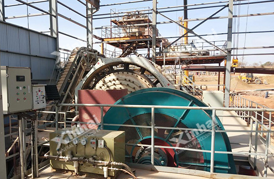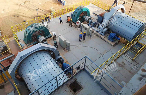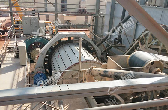 Most of the raw ore in this project was fine slime ore with fine particle size, which didn’t need the crushing stage. The raw material can be directly fed to the raw material warehouse, or discharged to the raw material warehouse for storage, and then sent to the steel bin by the forklift truck. The material was fed into the belt conveyor by the belt feeder under the material bin, then sent to the ball mill for grinding.