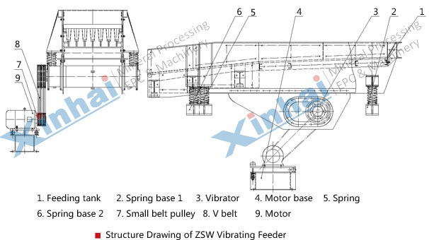 | Model | Tank Dimensions (mm) | Max. Feed Size (mm) | Feed Capacity (t/h) | Rotating Speed of Eccentric Shaft (r/min) | Motor Power (kW) |