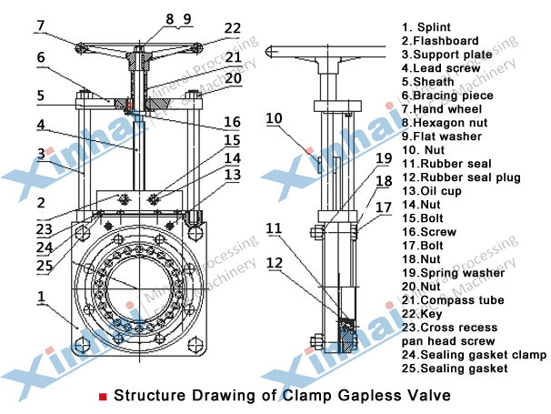 XWXZF/D-1.6 Structure and dimension of Xinhai motorized knife gate valve