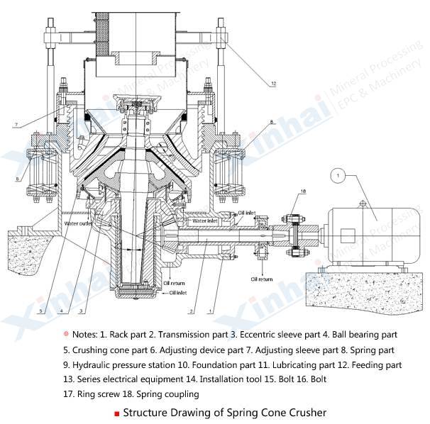 [Improvement]: The movable cone swings close to discharge opening of crushing cavity, which intersects an equal parallel strip between them to make end products granularity. Adopting dry oil and water sealing avoids the dust entering.