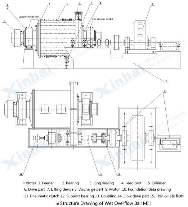 [Improvement]: Wet type overflow ball mill is lined with Xinhai wear-resistant rubber sheet with excellent wear resistance, long service life and convenient maintenance