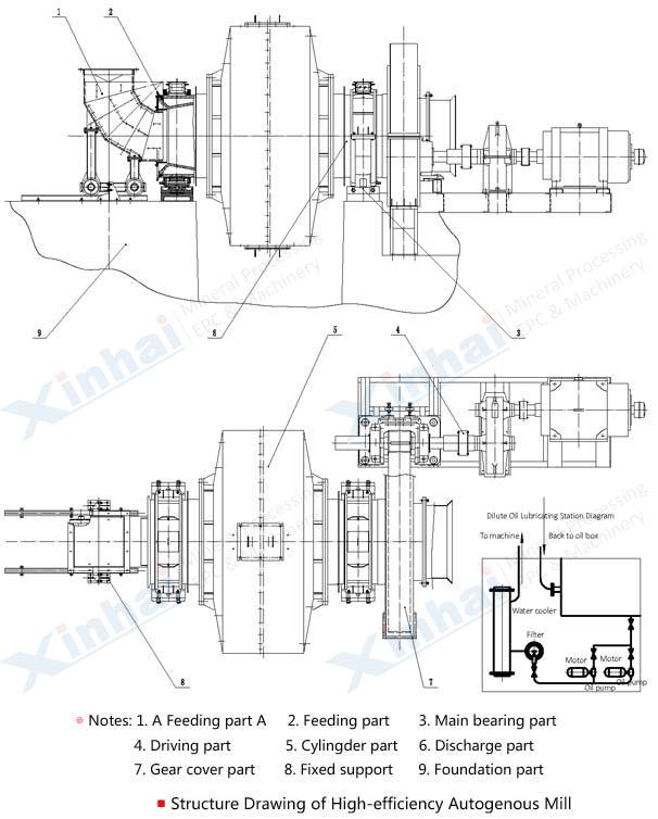 [Improvement]: High-efficiency autogenous mill can realize the second and third stage crushing and screening, and part or all crushing and grinding of rod mill or ball mil. Low power consumption, no dust pollution, less auxiliary equipment, easy production automation, and stable particle size.