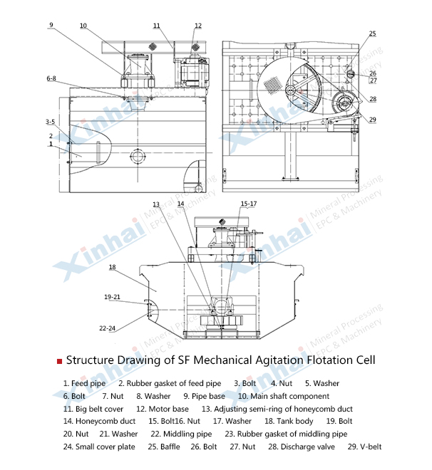 [Introduction]: SF flotation cell is a mechanical agitation type flotation equipment with self-slurry suction and self-air suction