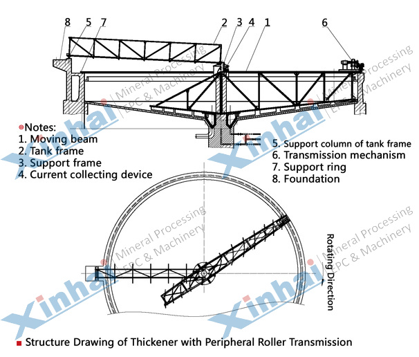 [Introduction]: Peripheral transmission thickener has two kinds, peripheral roller transmission and peripheral gear transmission