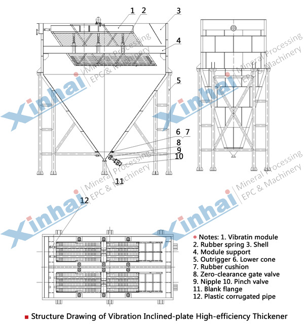 [Improvement]: The stirring device is installed in the center of tiled plate thickener; the vibrator is installed on the outer wall of cone to accelerate the thickening and avoid blockage.