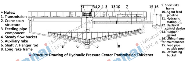[Introduction]: A thickener with center hydraulic driving and hydraulic automatic rake lifting