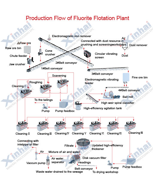 [Application]: Fluorite (Fluorspar) Flotation Process is applied for refractory fluorite with complicated properties such as high mud content, impurity containing, fine particle distribution etc..