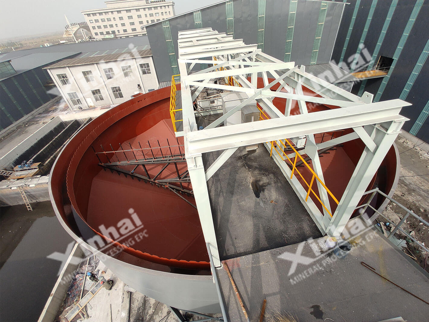 Process: Full closed circuit of three-stage grinding and six-stage separation-concentrates dewatering-tailings dewatering.