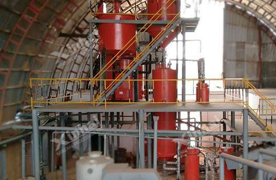 Hydrocyclone overflow pulp after trash screen in removing impurity, undersize pulp gravity to thickener for enrichment, thickener underflow concentration is enriched to 40%, with efficient slurry pump into the double impeller leaching tank for leaching and charcoal adsorption, and USES the roots blower to fill the air in the leaching tank, at the same time to join NaCN, pulp, reagents and air mix reaction.