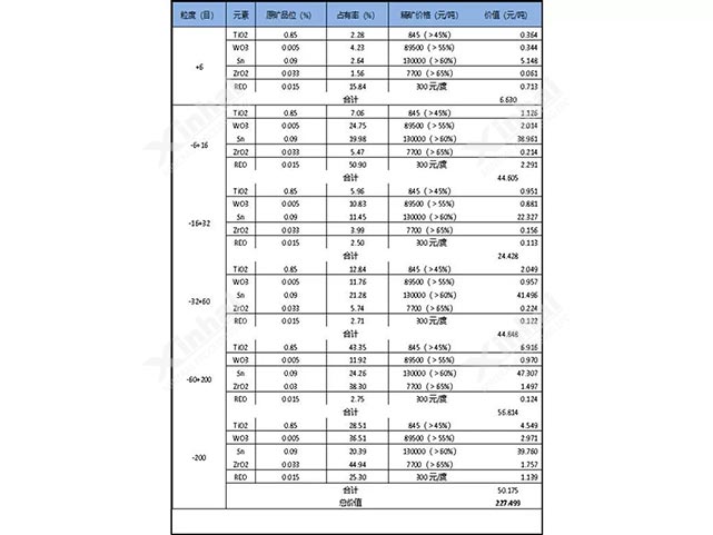 Taking the recovery of metallic minerals in sand as an example, at present, many domestic companies only recover the coarse particles in the development of overseas tin sand ore, sand gold ore, offshore zirconium ore, offshore ilmenite, sand tantalum niobium ore, and pay no attention to the comprehensive recovery, thus affecting the project valuation and processing plant benefit. Xinhai Mining pays attention to the comprehensive recovery of minerals and the recovery of fine grain minerals. As for the sand minerals with gravity separation, Xinhai Mining will carry out the particle size sieve analysis and the test of distribution of metallic minerals in each grain. The production value should be tested in necessary. And it should be combined with the cost of mineral processing operation in each grain.